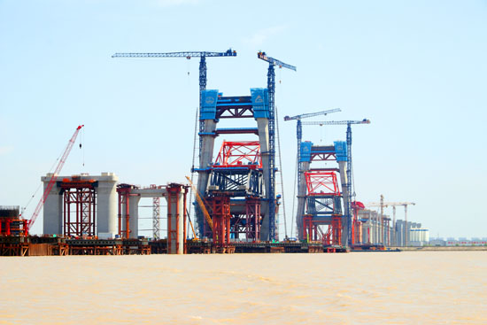 發(fā)布日期:2025-06-09? ? ? ? 6月8日,由中鐵大橋局承建的滬渝蓉高鐵滬寧段V標(biāo),崇啟公鐵長江大橋主通航孔橋首節(jié)鋼梁成功吊裝。中鐵大橋局作為中國橋梁建設(shè)的“國家隊(duì)”,具有豐富的橋梁施工經(jīng)驗(yàn),幾十年來在跨江、跨海、跨峽谷等極端環(huán)境下的橋梁施工中創(chuàng)造了多項(xiàng)世界紀(jì)錄和技術(shù)突破。此次施工中,中鐵大橋局與天業(yè)通聯(lián)合作研發(fā)新型TLJ1100架梁吊機(jī),該設(shè)備為項(xiàng)目建設(shè)的順利推進(jìn)提供了關(guān)鍵性的保障。