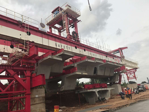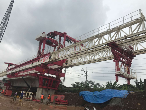 印尼600t節(jié)段拼裝接橋機完成第一片梁拼裝