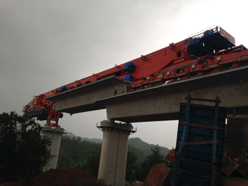 發(fā)布日期:2017-04-17截止到2017年4月17日,由通聯(lián)科技生產(chǎn)的900噸運(yùn)架一體式架橋機(jī)安全完成昌贛鐵路第100片梁的架設(shè)。 此臺(tái)架橋機(jī)自完成現(xiàn)場(chǎng)安裝調(diào)試投入使用以來,憑借良好的性能和極高效率, 得到了客戶單位和監(jiān)理單位的一致好評(píng)。