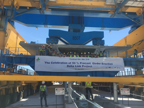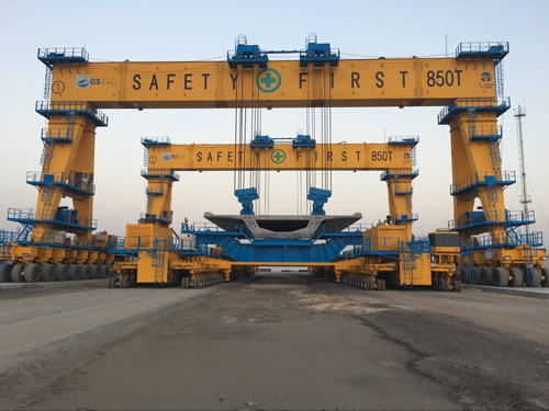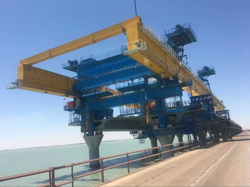 由我司為GS提供的一臺1700t架橋機,2臺850t提梁機,4臺425t運梁車以及門吊等設備,在多哈大橋的施工建設中發(fā)揮了關鍵性的作用,業(yè)主單位科威特公共交通事業(yè)部、施工單位GS建設 以及監(jiān)理單位對我司設備和現(xiàn)場服務均表示高度認可。